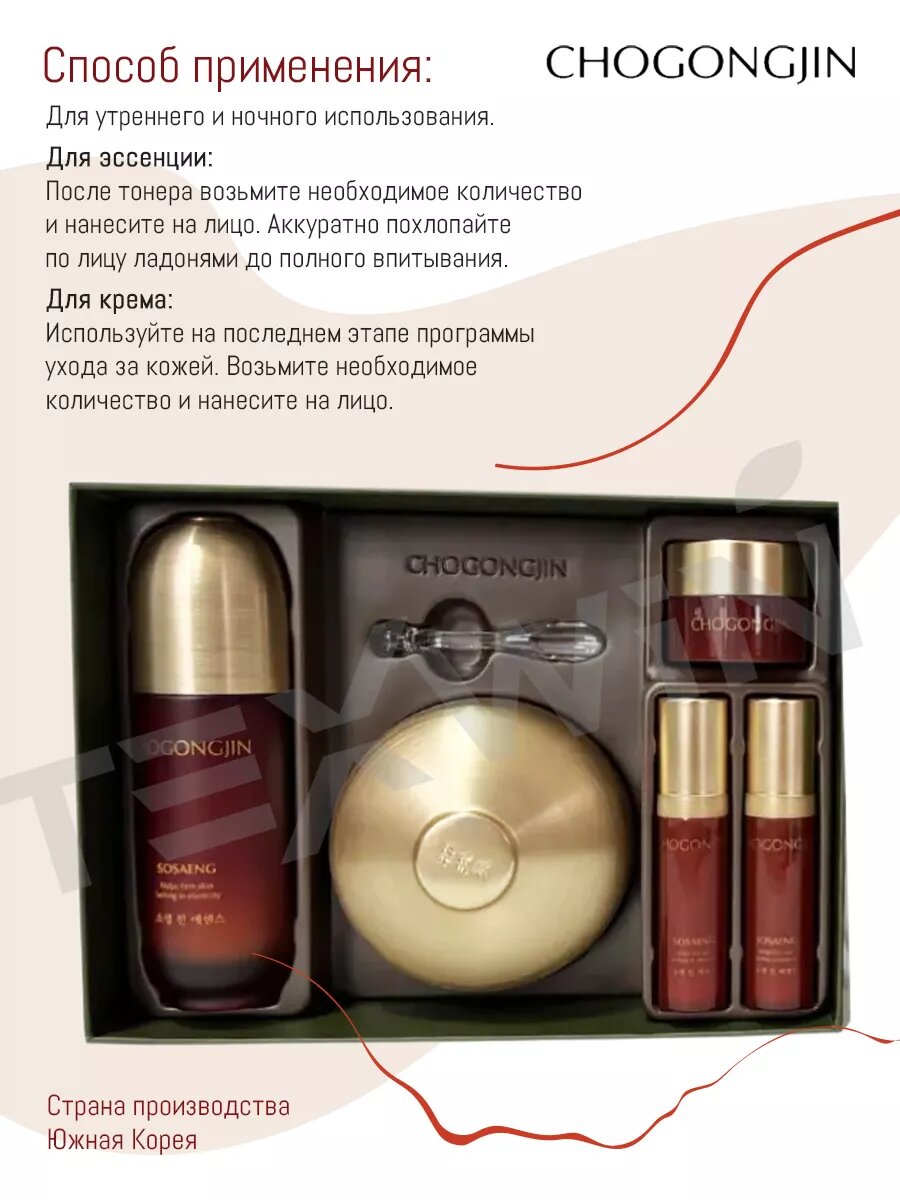 | В наборе | Эссенция Sosaeng Jin Essence 50 мл + 8 мл x 2 шт. Крем Sosaeng Jin 60 мл + 9 мл .Ватный диск 60 шт. |