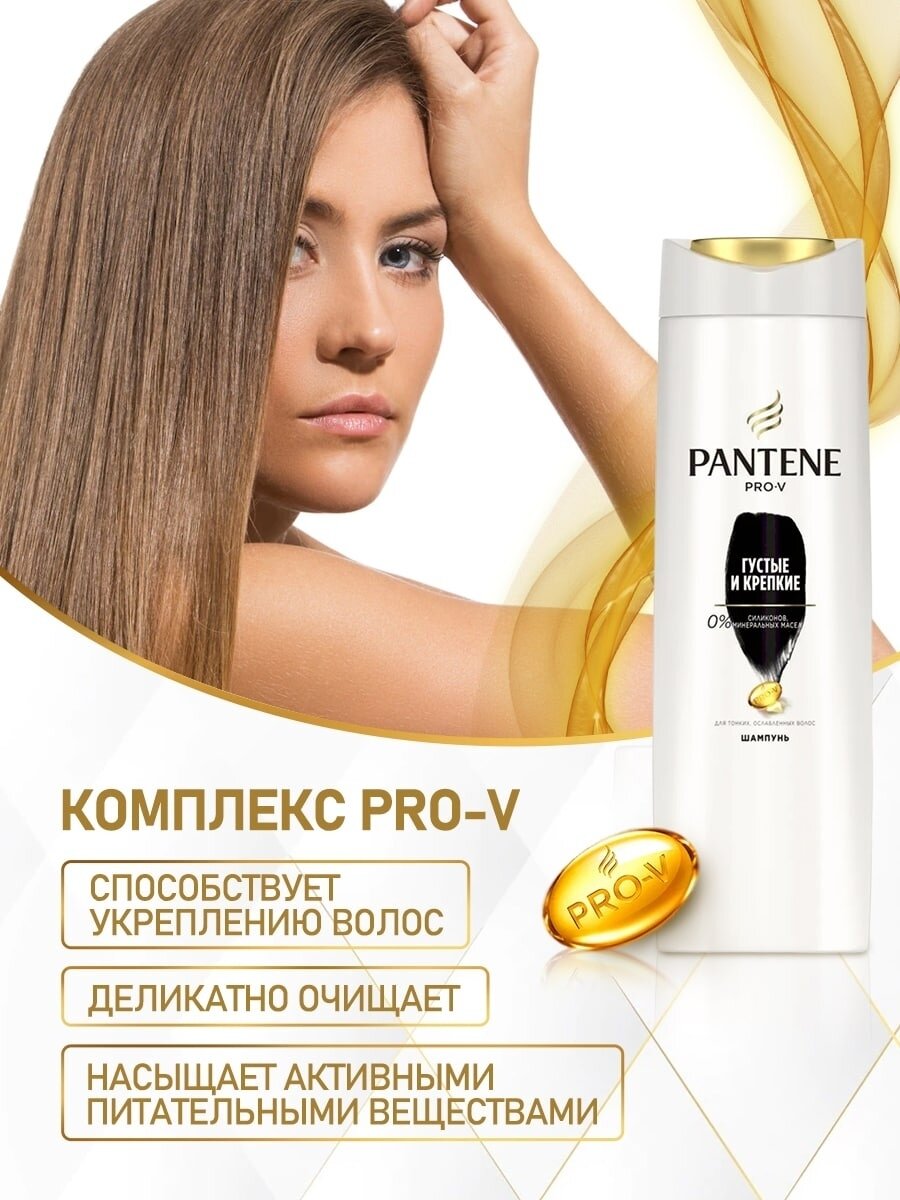 PANTENE Шампунь для тонких волос женский Густые и крепкие, 400 мл