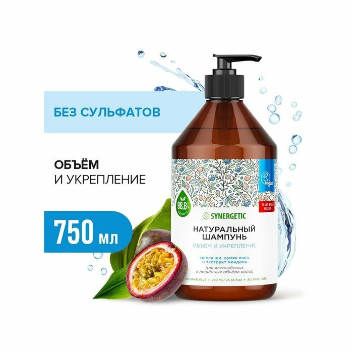 Шампунь для волос Synergetic Объем и укрепление волос бессульфатный, 750 мл