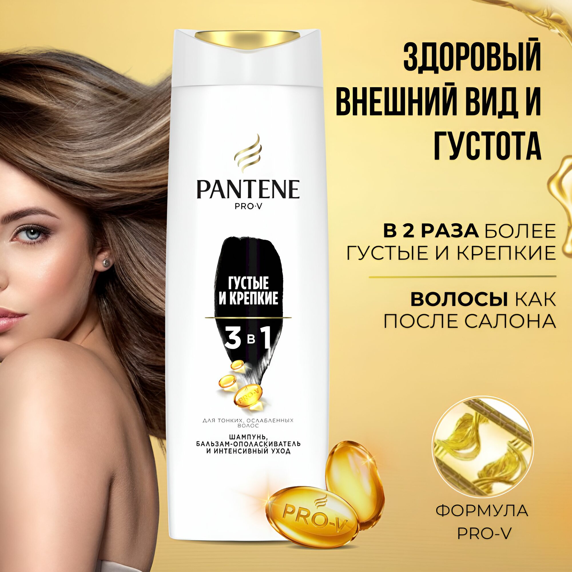 PANTENE Шампунь, бальзам-ополаскиватель, интенсивный уход 3в1 Дополнительный объем 360мл