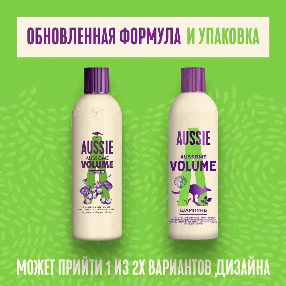 AUSSIE Шампунь Aussome Volume с австралийской сливой для объема волос, Осси, 300 мл,