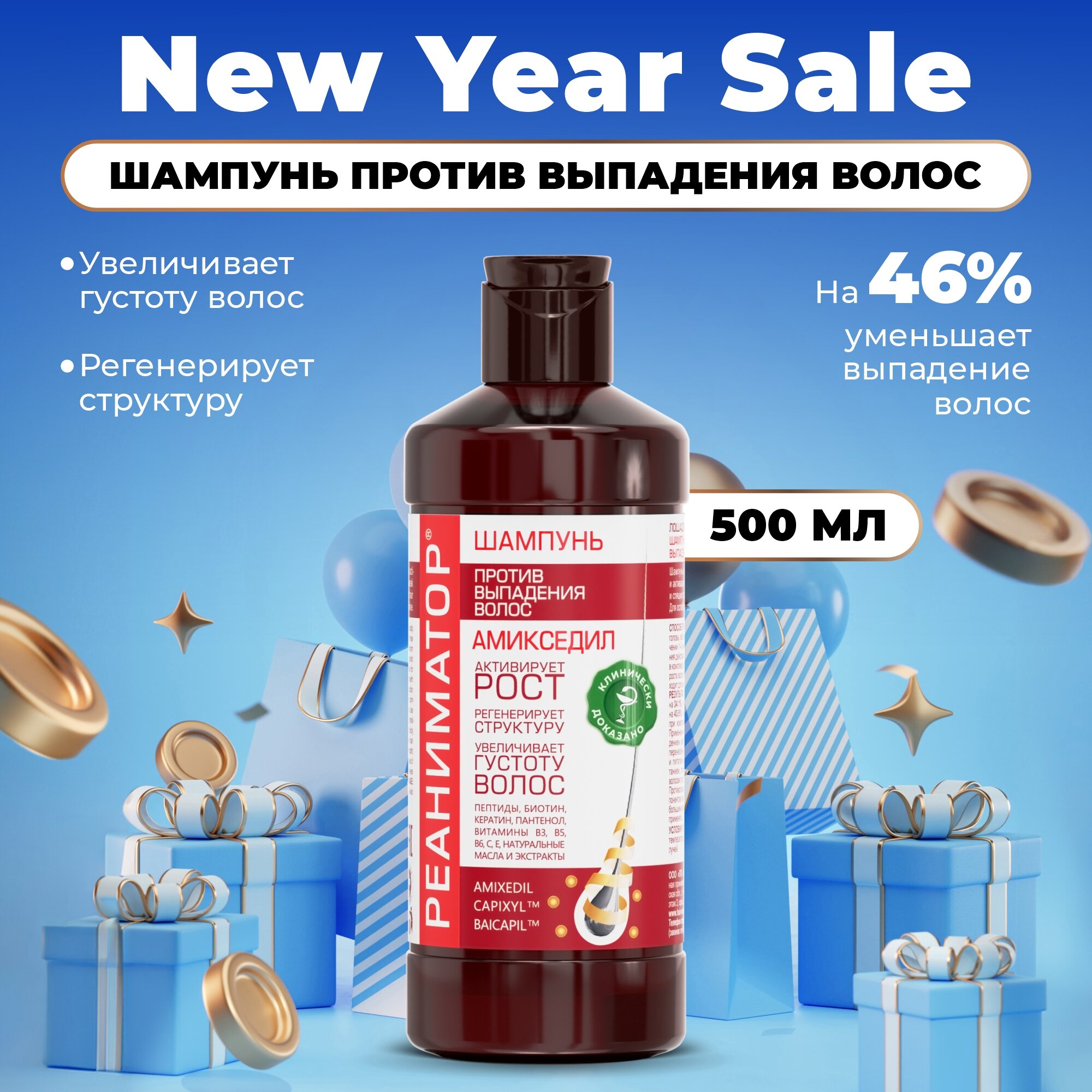 Шампунь для волос женский и мужской РЕАНИМАТОР лечебный, от выпадения волос Лошадиная Сила 7 натуральных экстрактов, 500