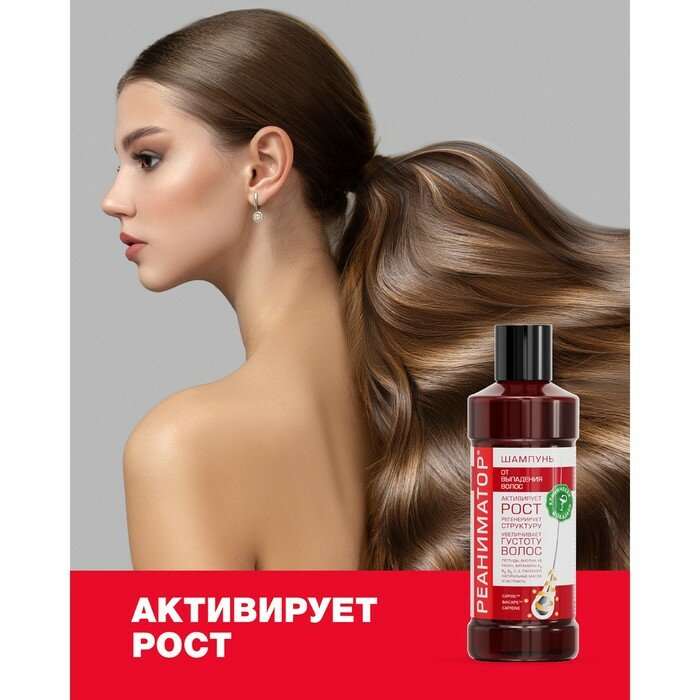 Шампунь для волос женский и мужской РЕАНИМАТОР лечебный, от выпадения волос Лошадиная Сила 7 натуральных экстрактов, 500