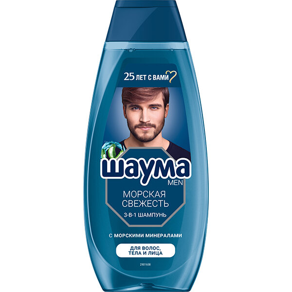 Шаума Men Шампунь Морская свежесть 3 в 1 для волос, тела и лица, 370 мл