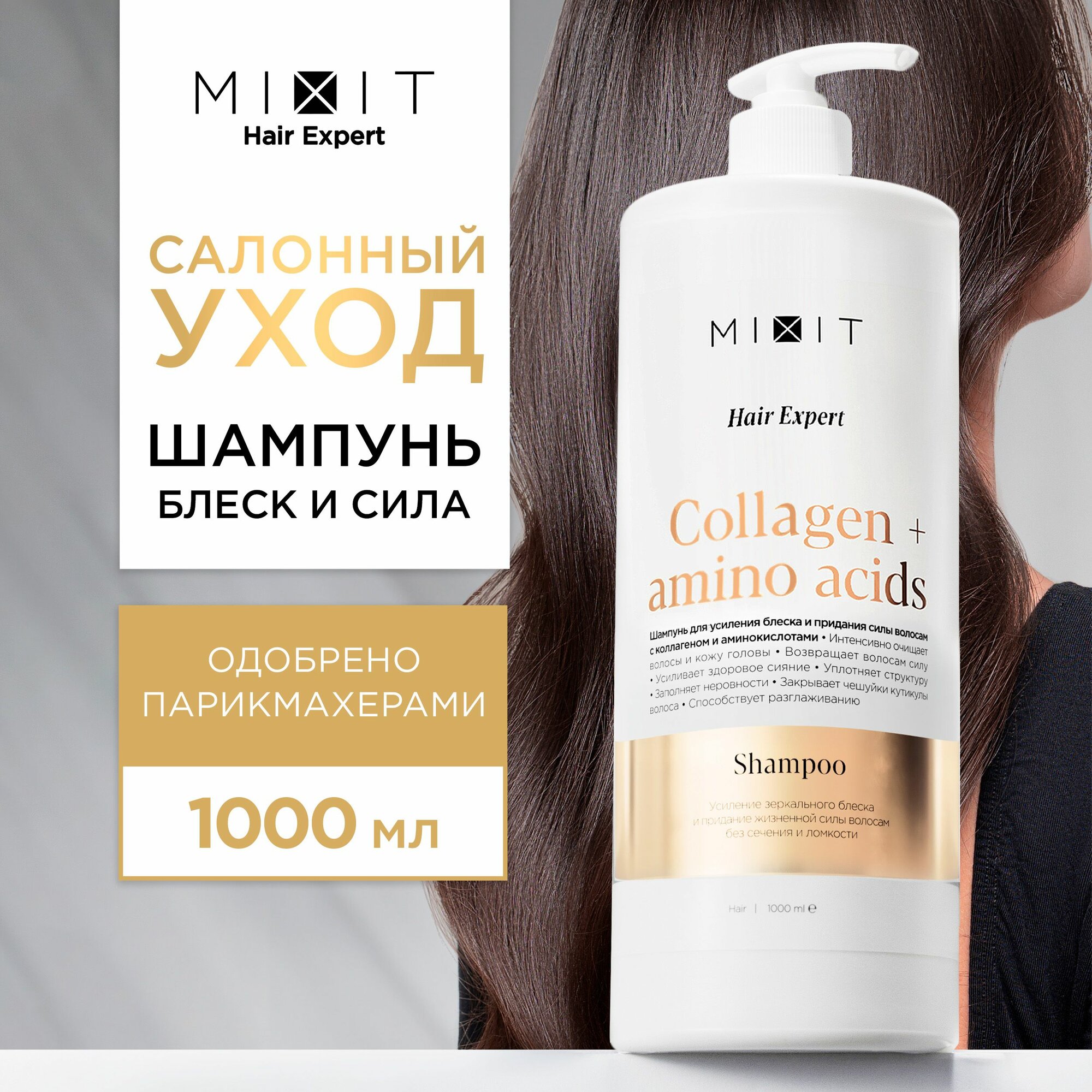 Шампунь для волос MIXIT COLLAGEN+AMINO ACIDS с коллагеном и аминокислотами (для усиления блеска) 1000 мл