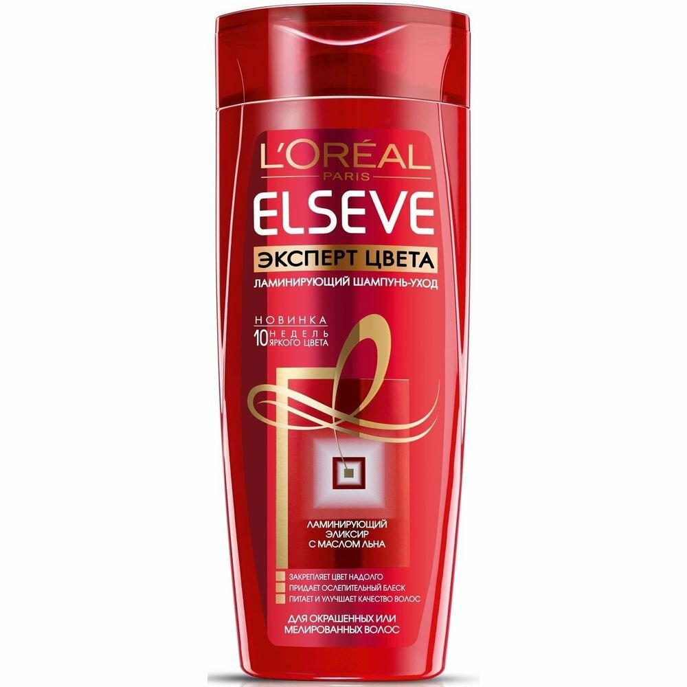 Ламинирующий шампунь L'oreal Paris Elseve Эксперт Цвета, для окрашенных или мелированных волос, 400 мл