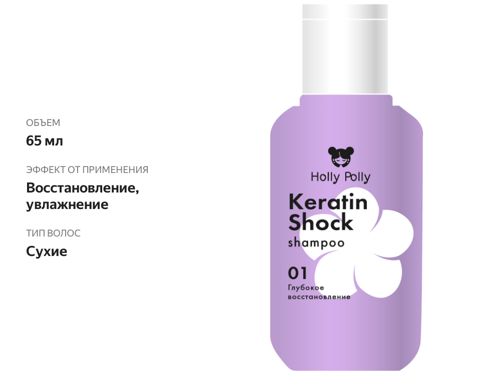 Шампунь для волос Holly Polly Keratin Shock восстанавливающий, 65 мл