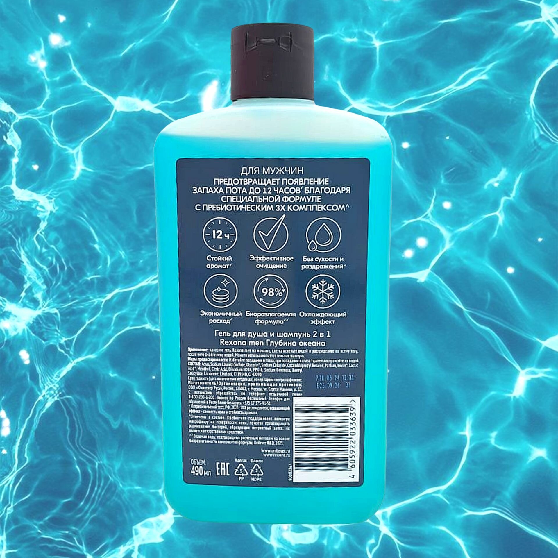 Купить Rexona Men гель для душа и шампунь 2 в 1 Глубина океана 490 мл