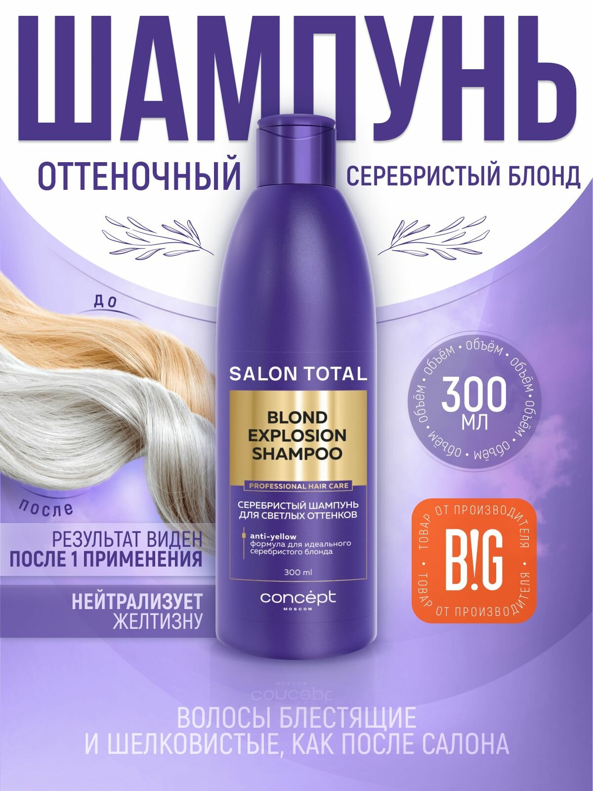 Concept Серебристый шампунь для светлых оттенков, нейтрализатор желтизны, 300 мл интересное: