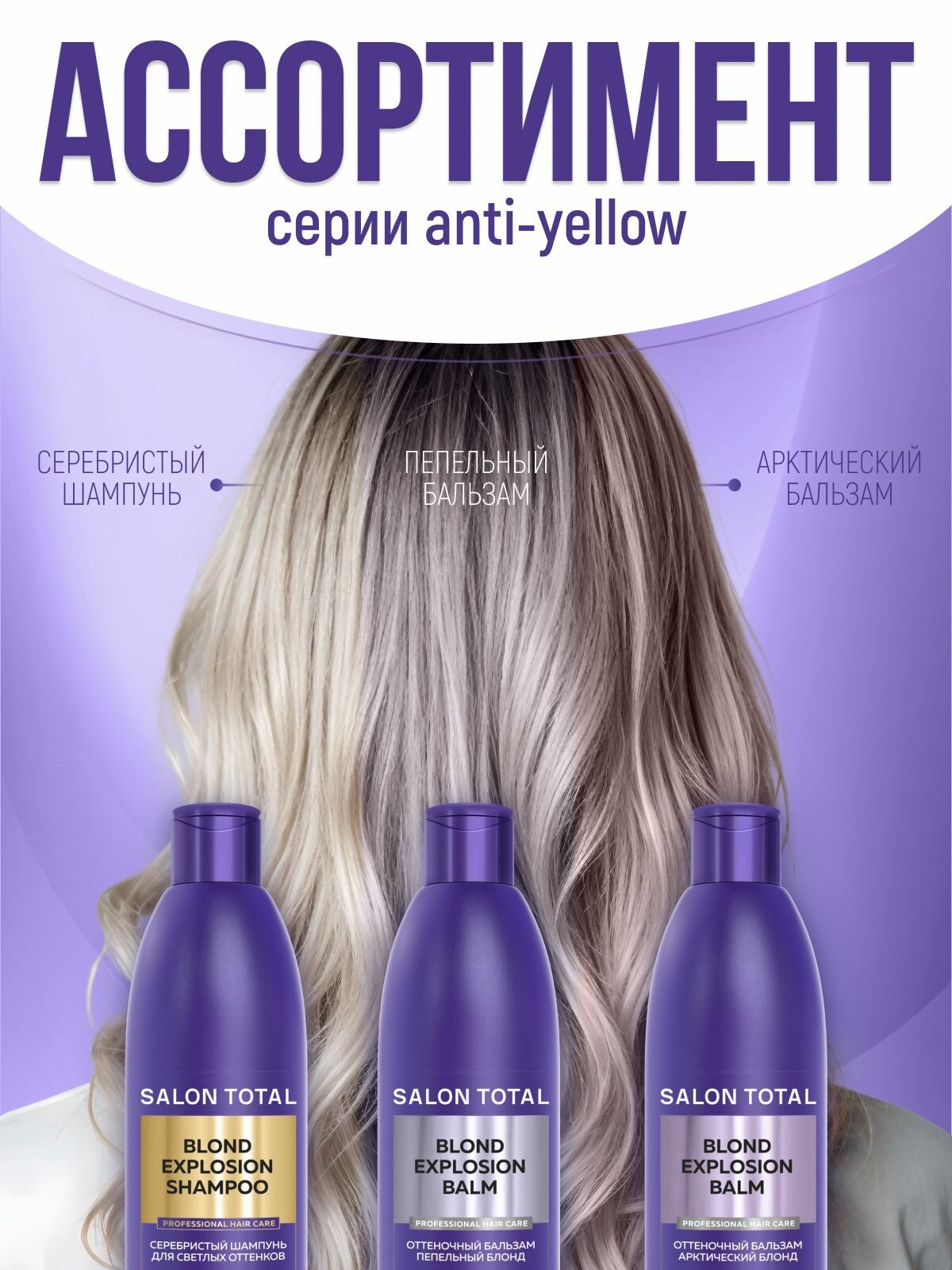 | Способ применения | Через 2-3 недели после окрашивания нанесите шампунь на несколько минут, чтобы избавиться от желтизны и получить интенсивный холодный пепельный цвет, не уступающий по эффекту профессиональным линиям дорогой косметики. Контролируя время выдержки на волосах, можно получить цвет разной интенсивности. Применяется раз в 1-2 недели после обычного уходового шампуня. Для наилучшего эффекта после использования шампуня наносите на волосы кондиционер или питательную маску. |