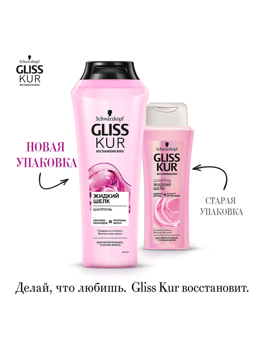 Шампунь, Gliss Kur, жидкий шелк, для ломких, лишенных блеска волос, 400 мл, 2 шт