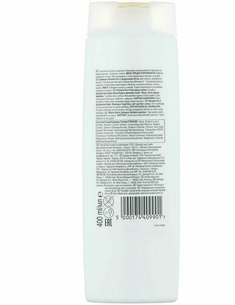 Купить PANTENE Pro-V Шампунь Дополнительный объем / для тонких, лишенных объема волос / Пантин / 400мл