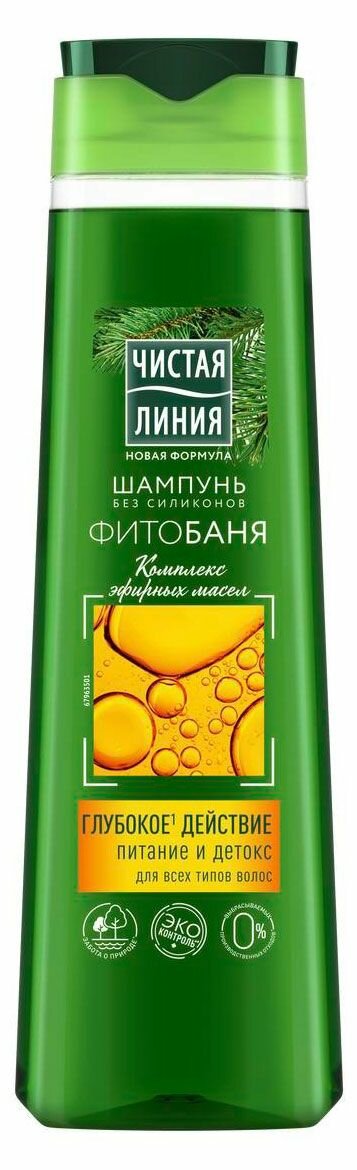 Чистая Линия шампунь фитобаня питание и детокс для всех типов волос комплекс эфирных масел 400 мл