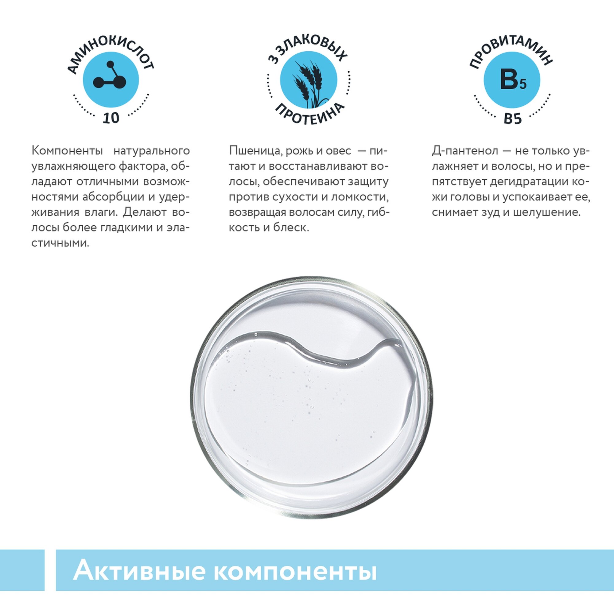 | Активный ингредиент | аминокислоты / витамин B5 / пантенол / протеины / сорбитол |