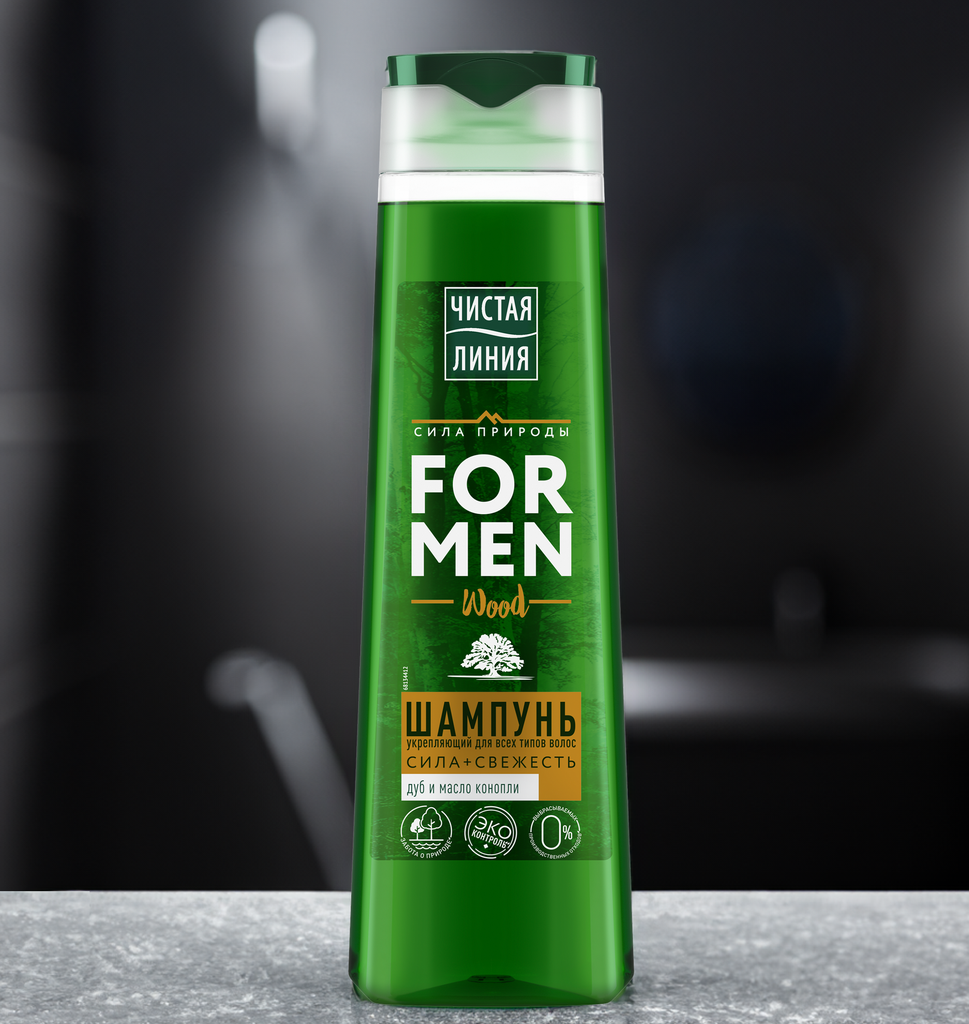 Шампунь Чистая Линия For Men укрепляющий Wood Сила и Свежесть для всех типов волос Дуб и масло конопли 400 мл