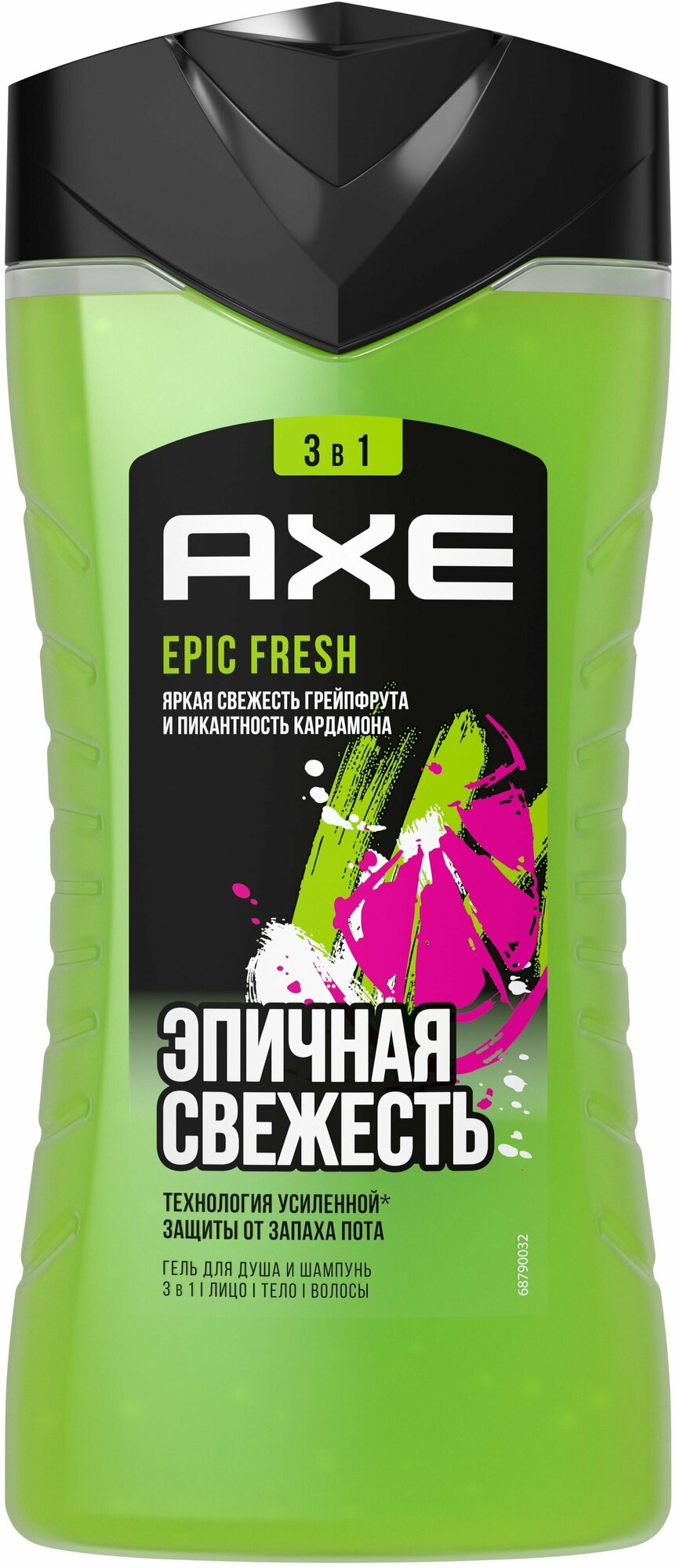 Мужской гель для душа, шампунь и средство для умывания 3в1 AXE Epic Fresh Грейпфрут и кардамон 100 мл