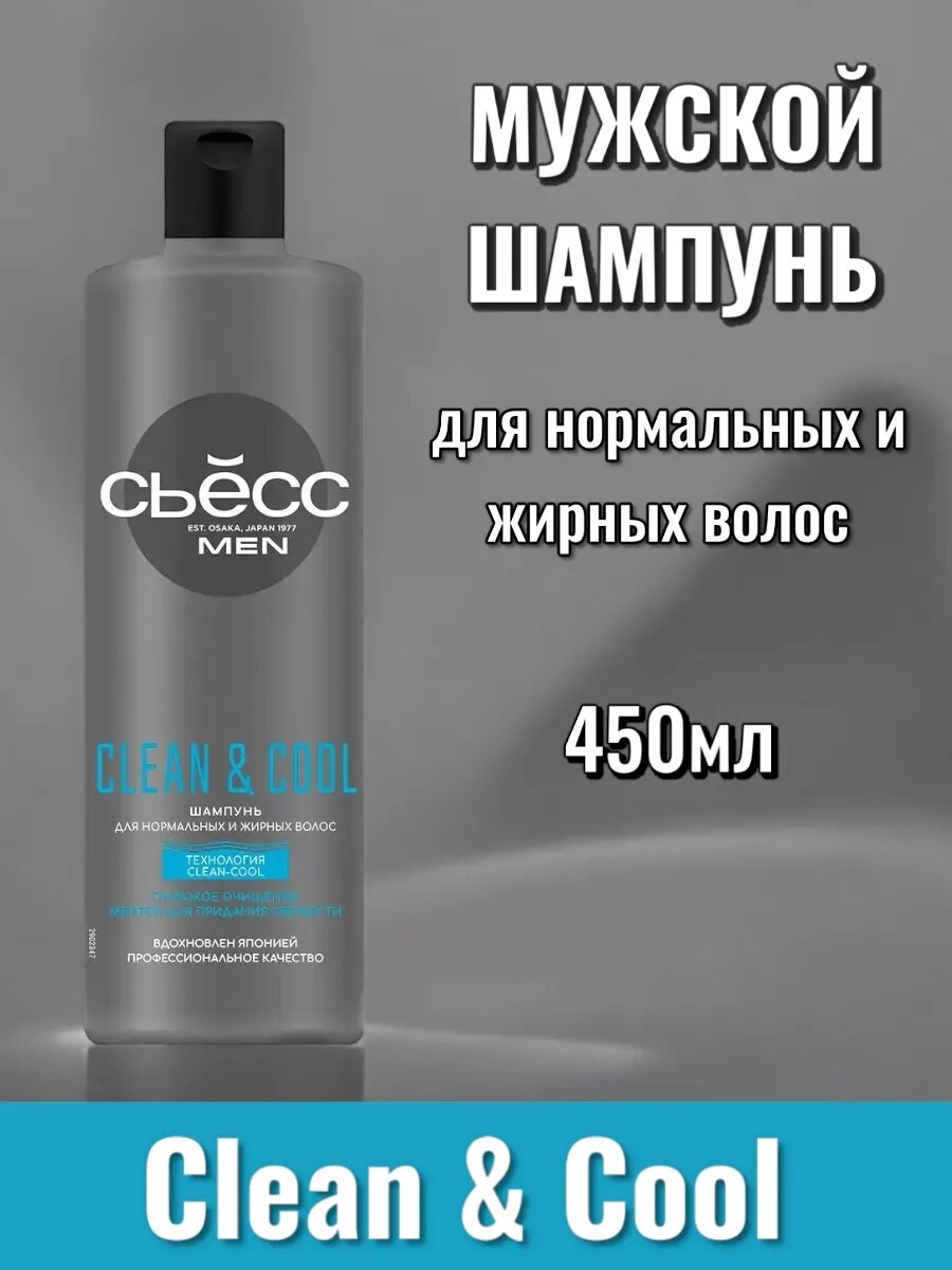 Сьесс Шампунь мужской Clean & Cool для нормальных и жирных волос, глубокое очищение, для жирной кожи головы, 450 мл