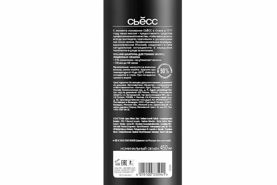 Сьёсс Шампунь для волос VOLUME, для тонких волос, лишенных объёма, воздушный объём без утяжеления, 450 мл - 3 шт