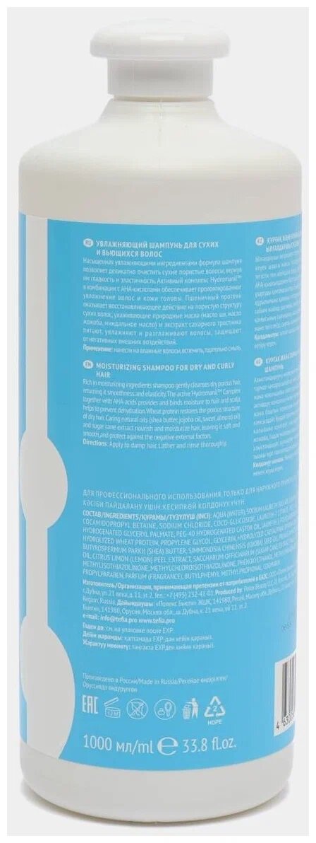 Tefia, Шампунь увлажняющий для сухих и вьющихся волос MYCARE Moisture, 1000 мл