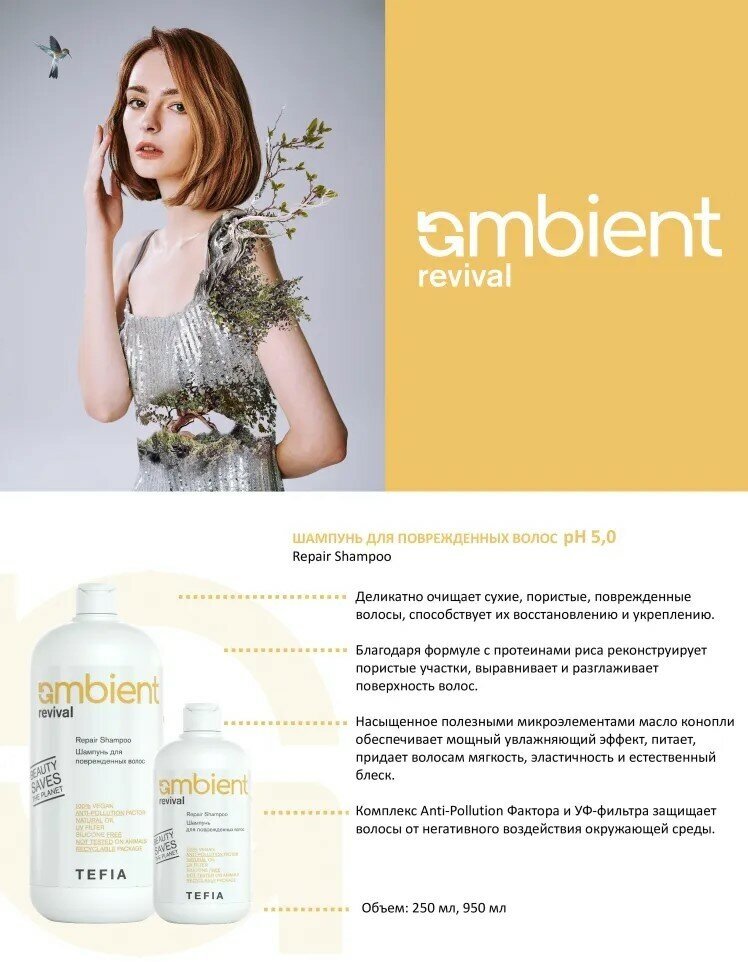 Tefia Ambient Revival Шампунь для поврежденных волос, 250 мл.
