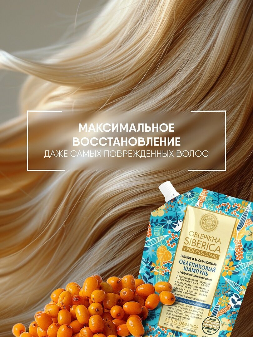 Natura Siberica шампунь Облепиховый Питание и восстановление с эффектом ламинирования для ослабленных и поврежденных волос, 540 мл