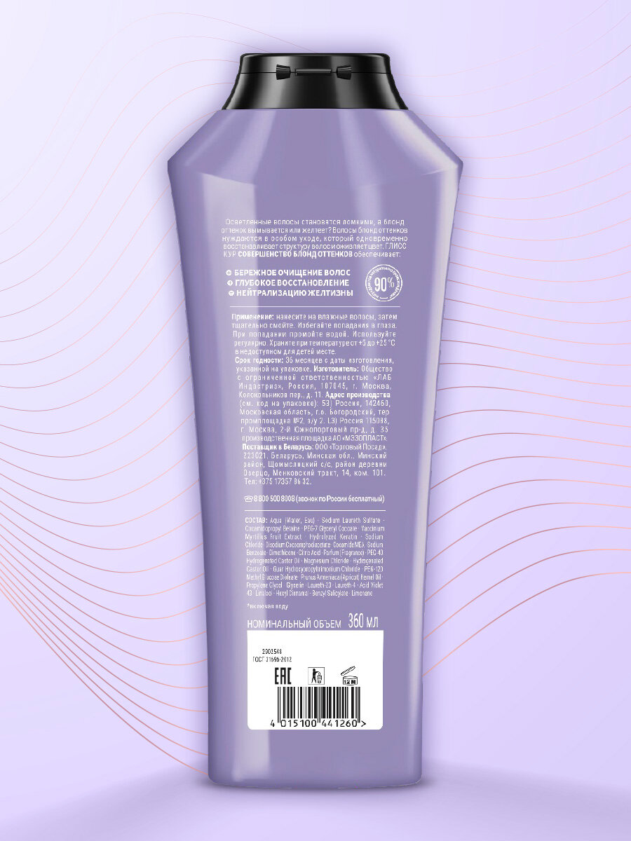 Глисс Кур Шампунь для волос Совершенство блонд оттенков 360 мл - 6 шт