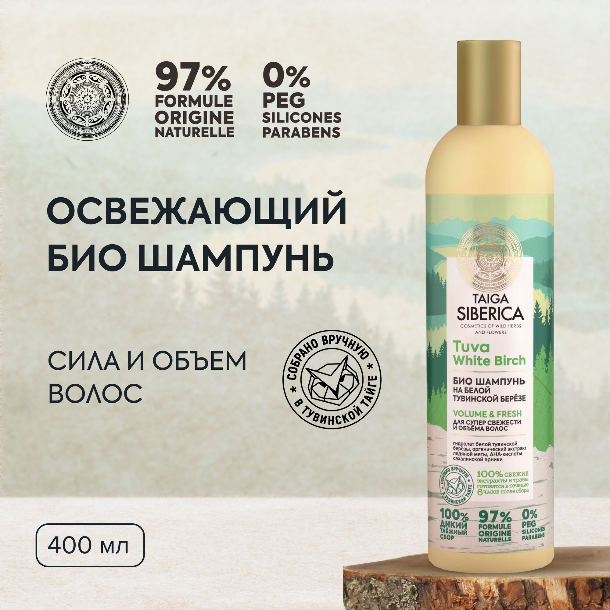 Купить Шампунь Natura Siberica Taiga Siberica «Био. Освежающий для супер свежести и объема волос», 400 мл
