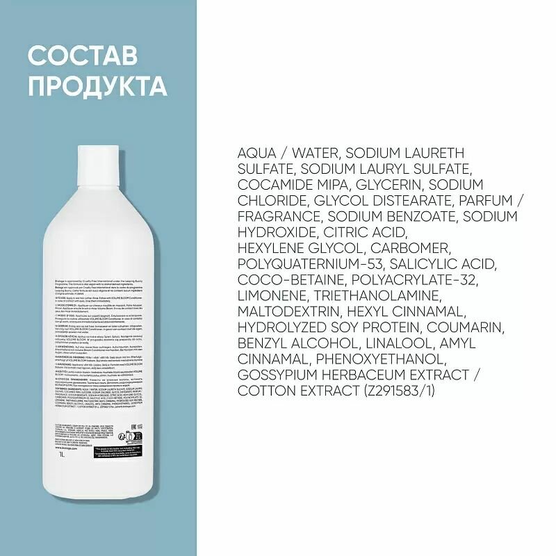 | Эффект | восстановление / глубокая очистка / защита от негативного воздействия окружающей среды / защита цвета / облегчение расчесывания / очищение / питание / придание блеска / придание мягкости / придание объема / придание эластичности / разглаживание / увлажнение / укрепление / уплотнение волос |