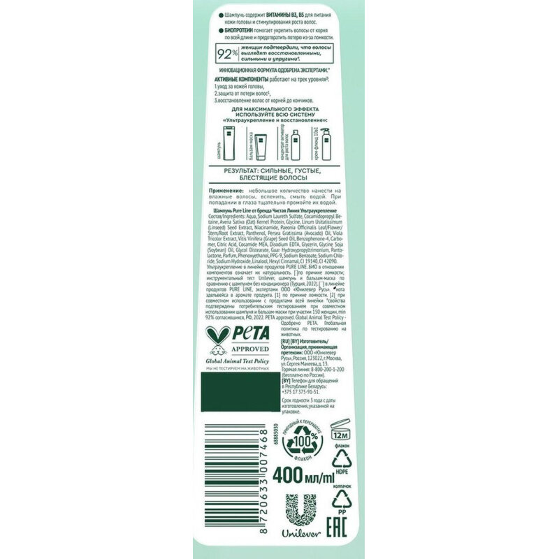 Шампунь Чистая Линия Pure line Ультраукрепление и восстановление, 400 мл