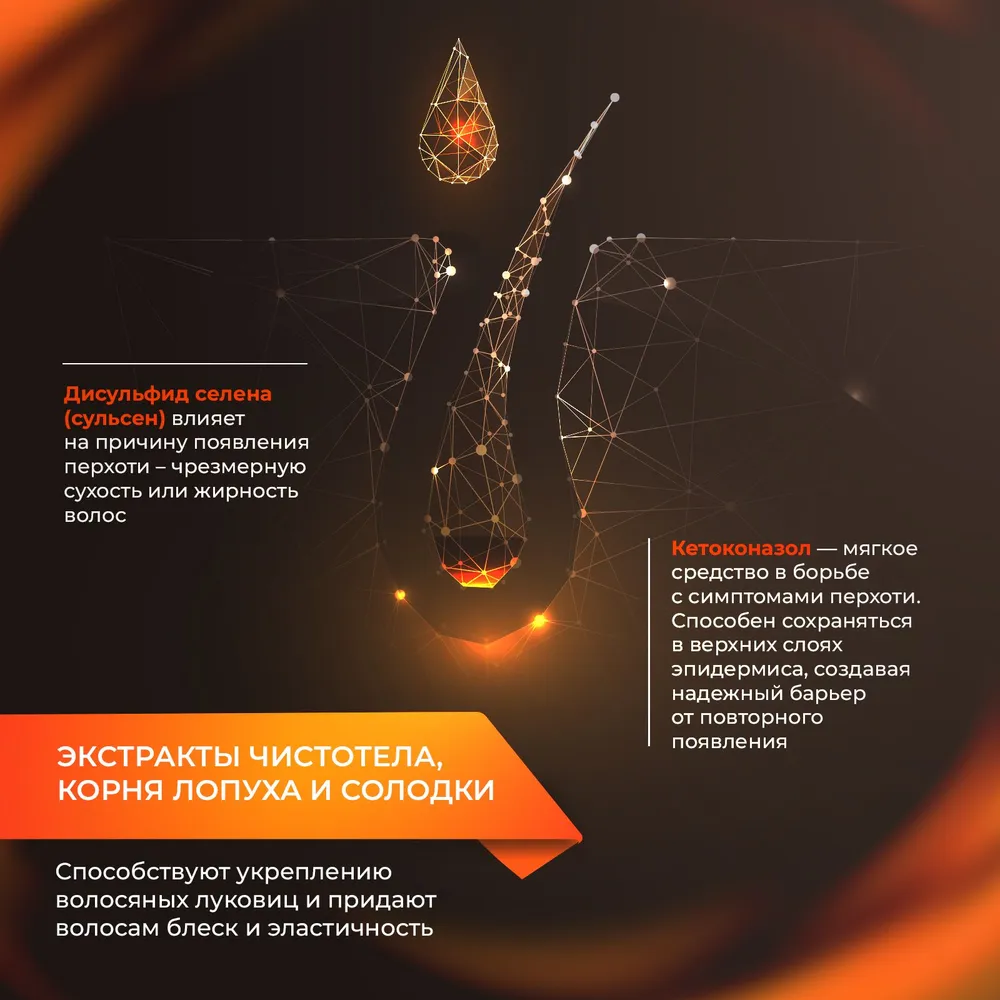 | Состав | aqua, sodium laureth sulfate, cocamidopropyl betaine, lauryl glucoside, glycerin, arctium lappa root extract, chelidonium majus extract, glycyrrhiza glabra root extract, polyquaternium-7, silicone quaternium-16 (and) undeceth-11 (and) butyloctanol (and) undeceth-5, ketoconazole, acetyl methionine, laureth-2, selenium sulfide, sodium carbomer, edta, methylchloroisothiazolinone, methylisothiazolinone, citric acid, parfum |