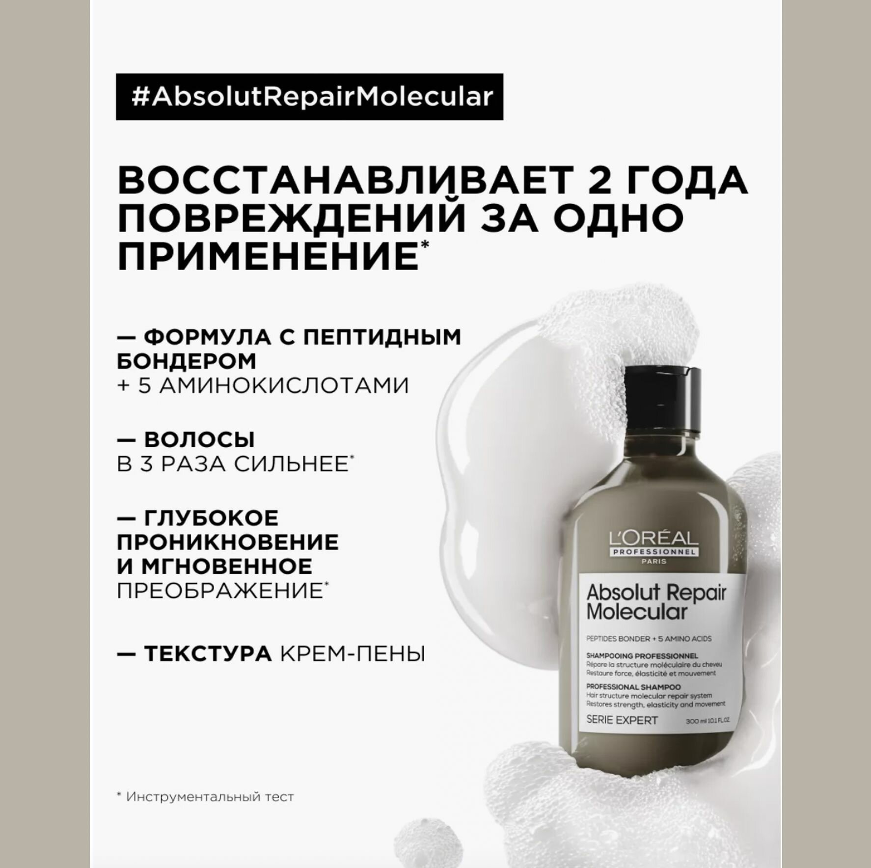 Loreal Professionnel Absolut Repair Molecular Лореаль Абсолют Репейр Шампунь для молекулярного восстановления волос, 300 мл NEW -