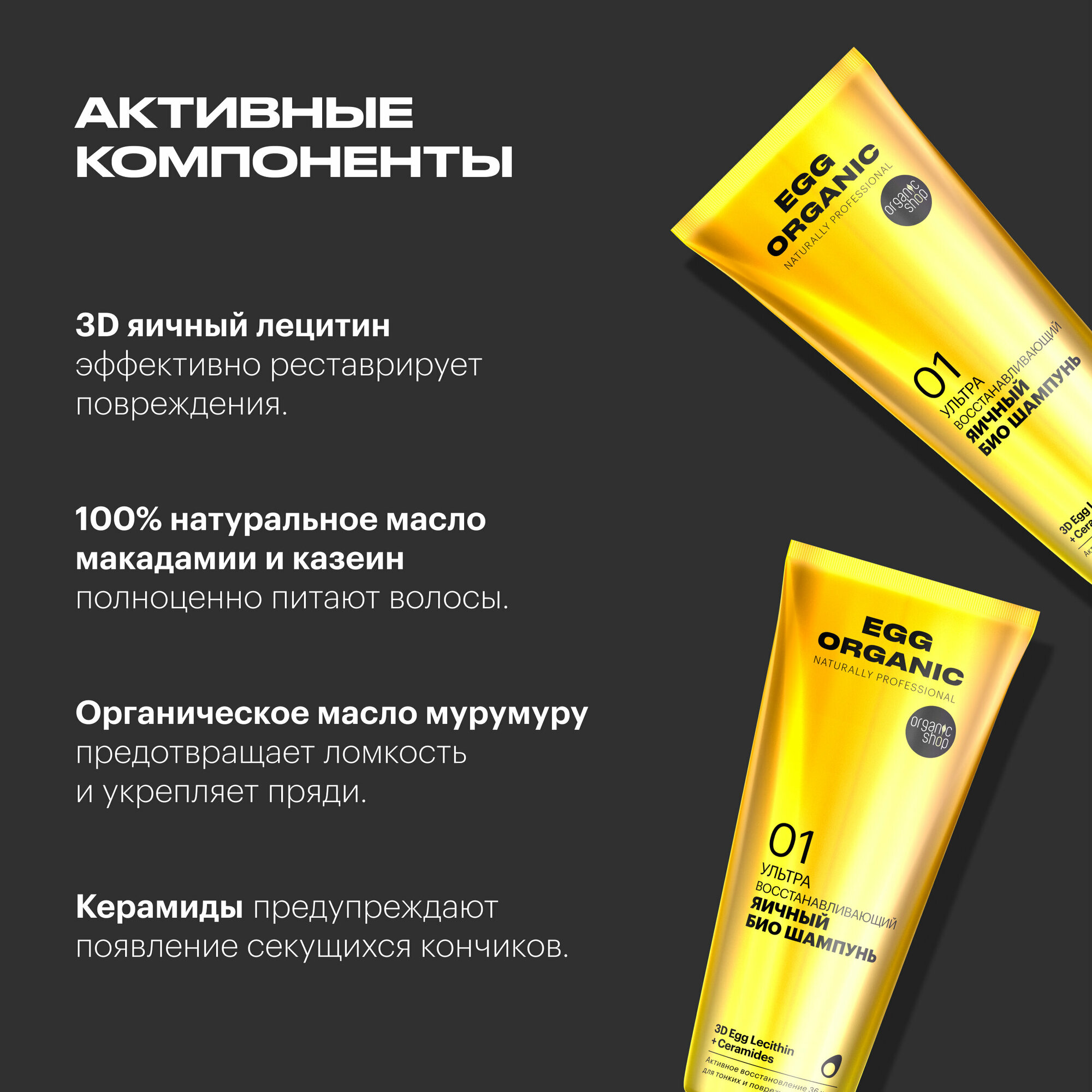 Шампунь Organic Shop "Био-шампунь Egg Organic Naturally Professional", яичный, ультра восстанавливающий, 250 мл
