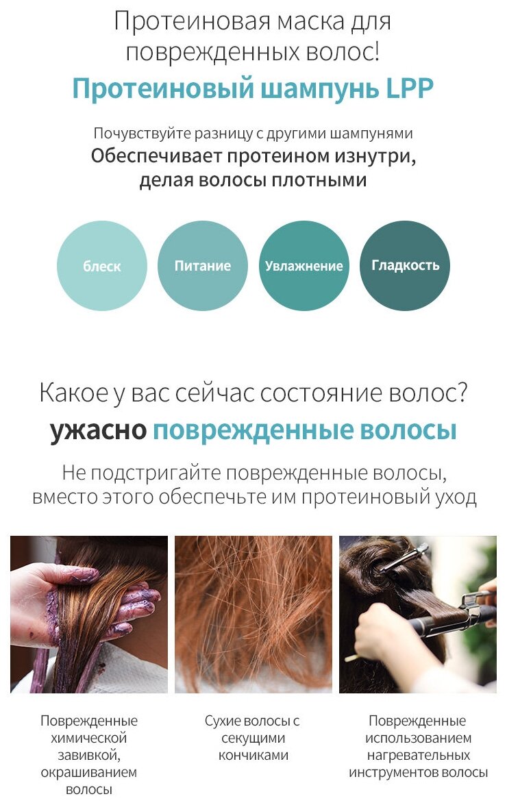 | Активный ингредиент | аллантоин / аминокислоты / бетаин / витамин E / гиалуроновая кислота / гидролизованный шелк / глицерин / керамиды / кератин / коллаген / лимонная кислота / молочная кислота / мочевина / полисахариды / протеины / протеины пшеницы / протеины шелка / салициловая кислота / хитозан / яблочный уксус |