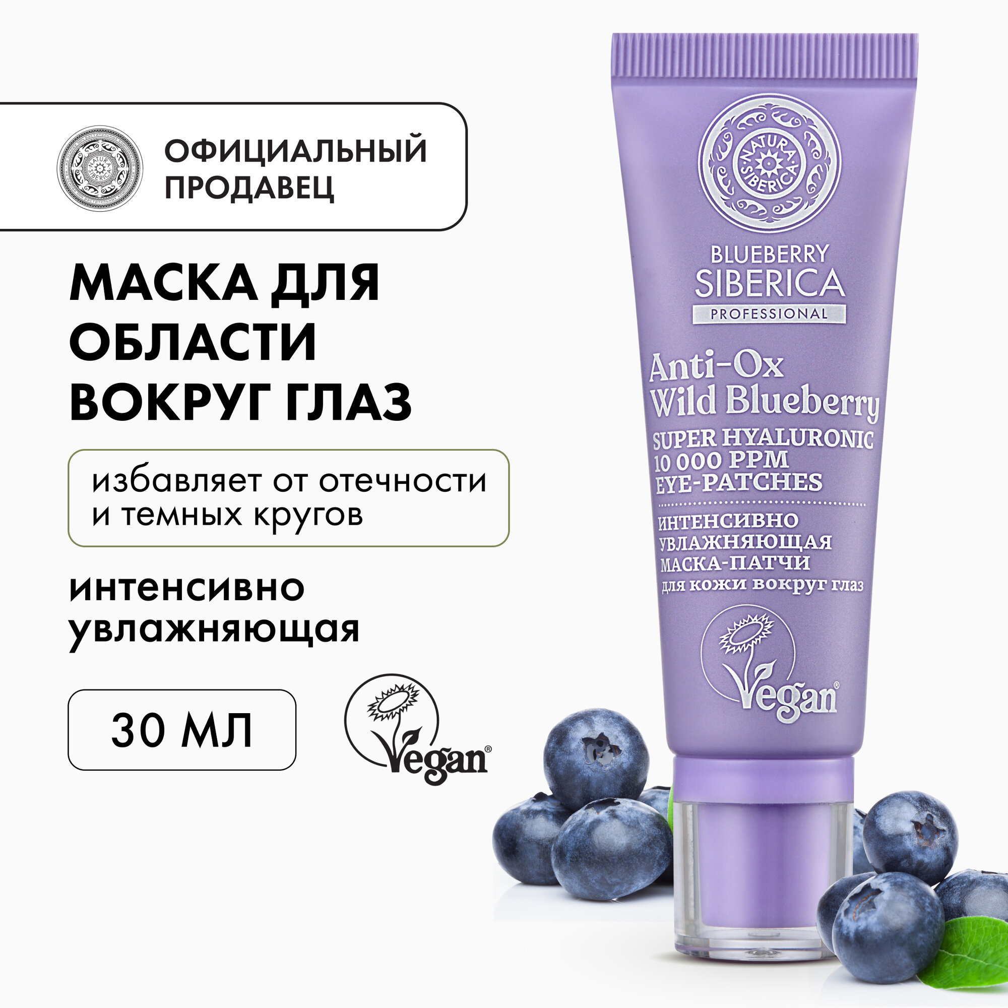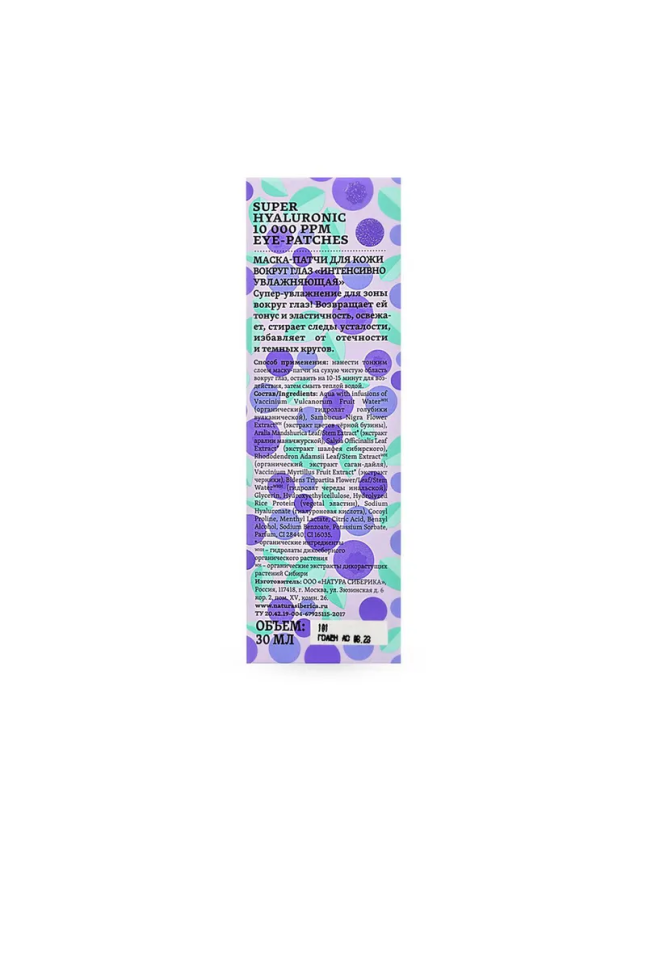 NATURA SIBERICA, BLUEBERRY SIBERICA, Маска-патчи для кожи вокруг глаз, Интенсивно увлажняющая, 30 мл