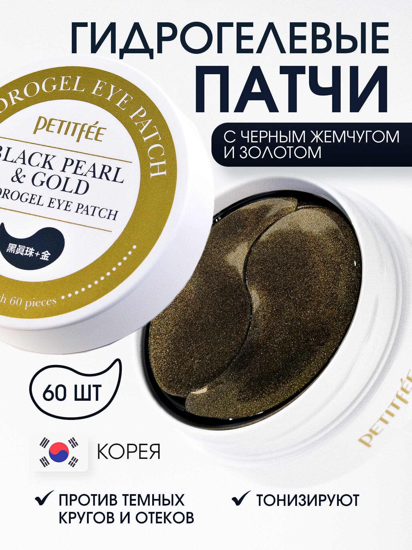 Купить Гидрогелевые патчи для глаз с черным жемчугом и золотом