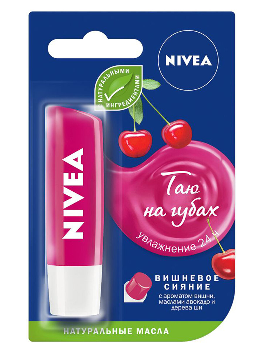 Ниже Вы можете прочитать отзывы на Бальзам для губ увлажняющий NIVEA "Вишневое сияние" с маслом дерева ши и витаминами С и Е, 4,8 гр., ознакомится с подробными характеристиками, посмотреть интересные обзоры и фотографии на Бальзам для губ увлажняющий NIVEA "Вишневое сияние" с маслом дерева ши и витаминами С и Е, 4,8 гр..