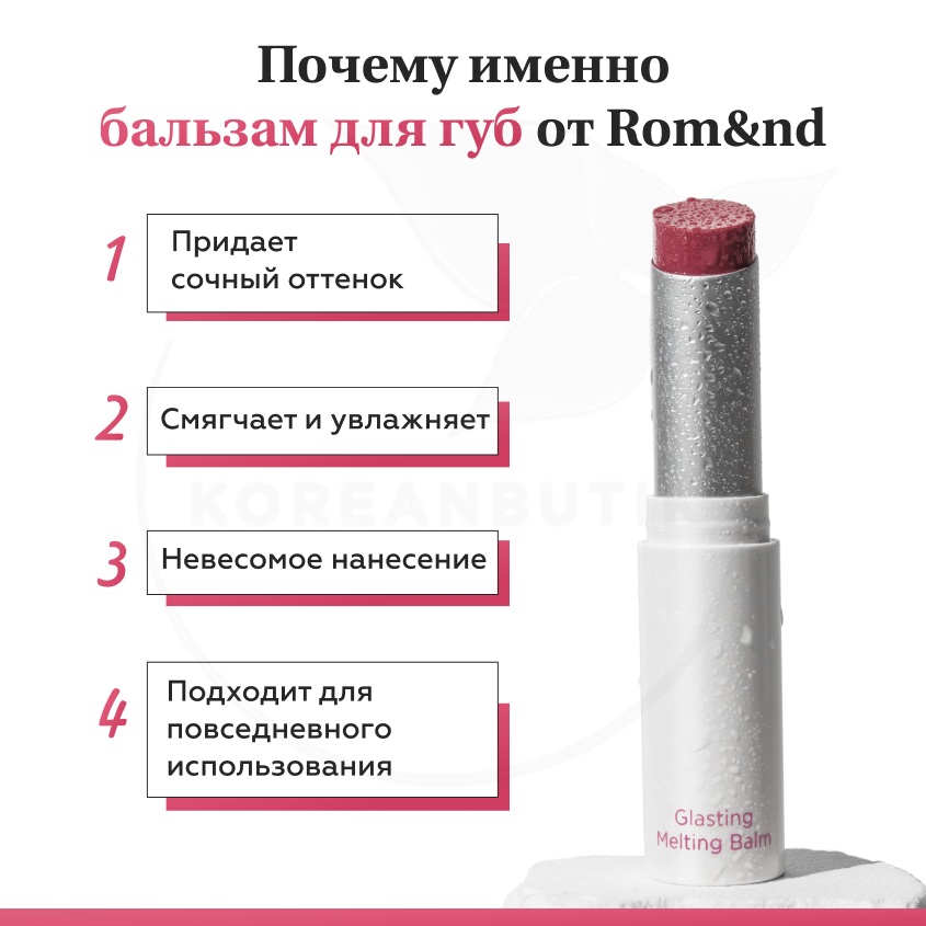 СохранитьБальзам для губ оттеночный ROM&ND Glasting Melting Balm 07. Mauve Whip интересное: