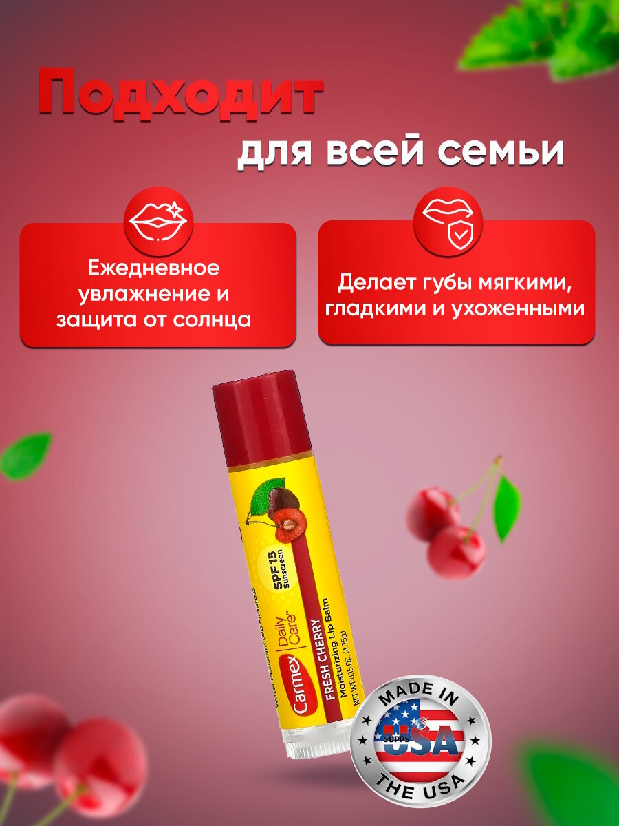 Carmex, Daily Care, увлажняющий бальзам для губ, свежая вишня, SPF 15, 4,25г