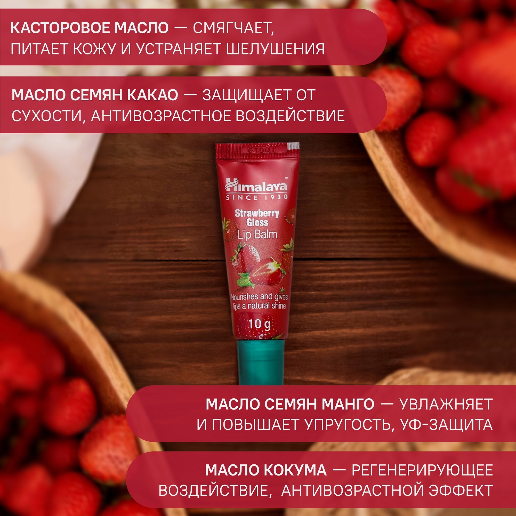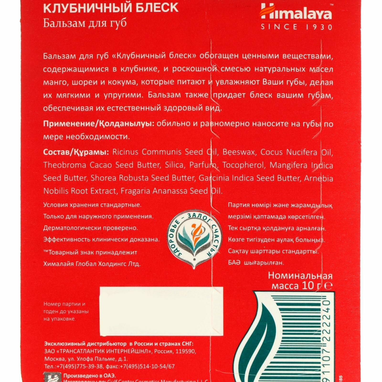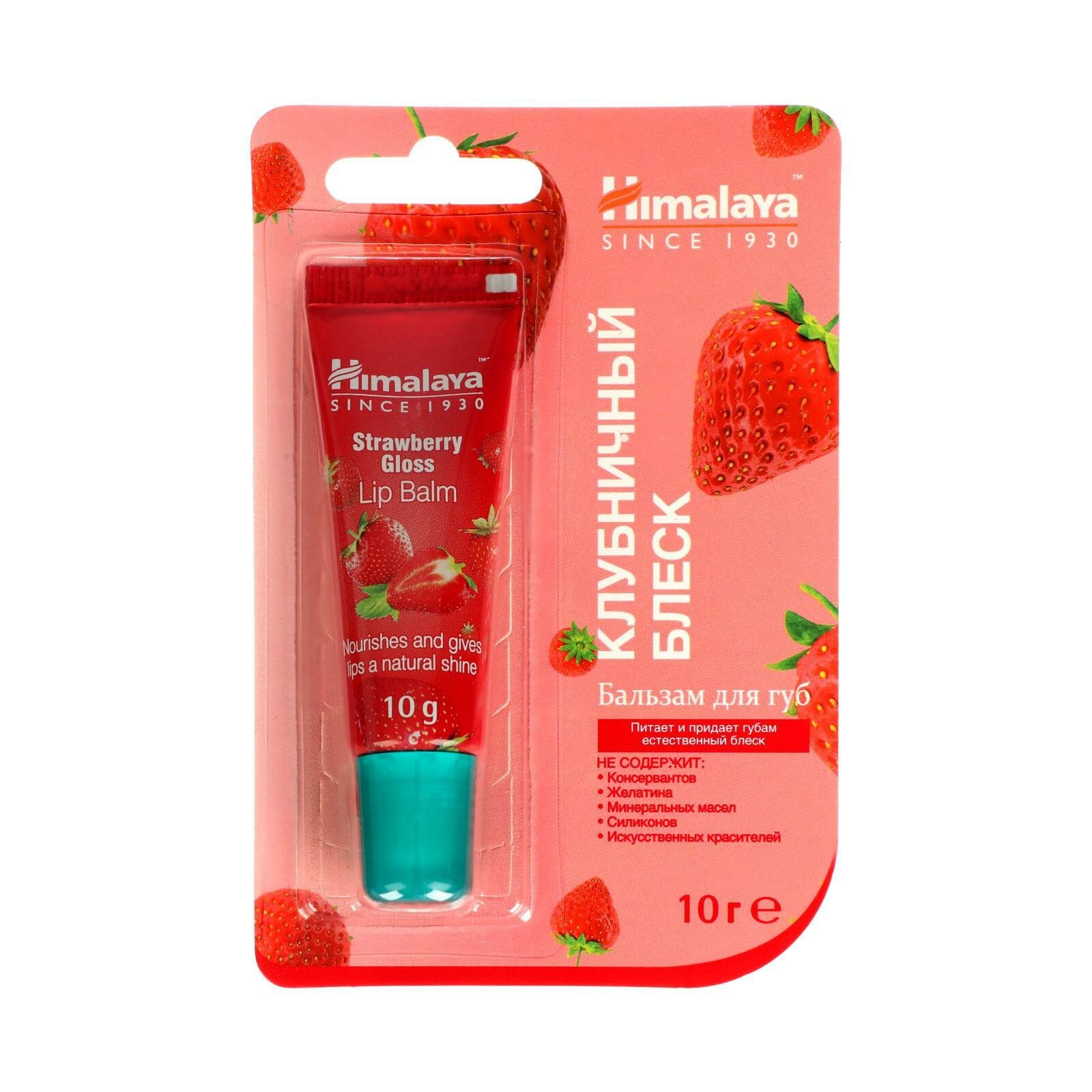 Купить Himalaya Since 1930 Бальзам для губ "Клубничный блеск" увлажняющий, питательный, натуральный, оттеночный, 10 г.