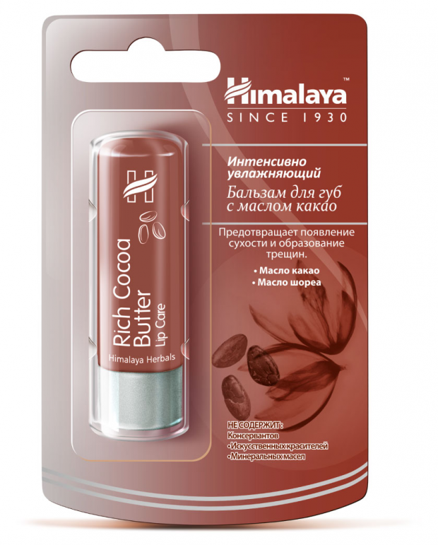Бальзам для губ интенсивно увлажняющий с маслом какао без парабенов и парафинов, Himalaya (Хималайя), 10г