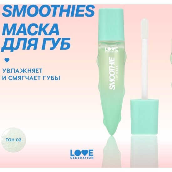 Маска для губ Love Generation Smoothies увлажняющая, с кокосовым маслом и экстрактом алоэ, тон 02, прозрачно-зеленый, 6 мл интересное: