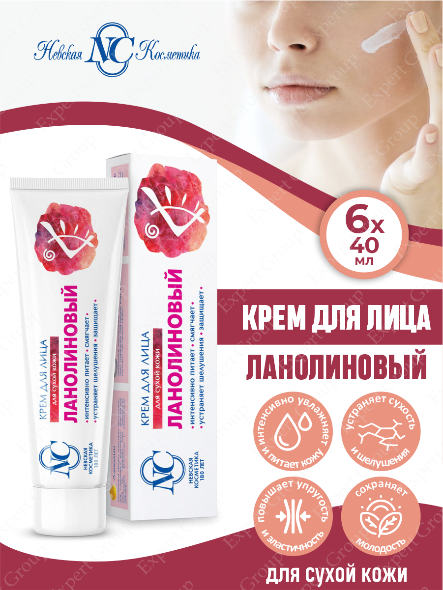 Крем для лица, Невская косметика, ланолиновый, для сухой кожи, 40 мл, 6 шт