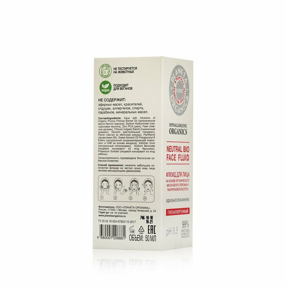 Купить Флюид для лица Planeta Organica Pure гипоаллергенный Идеальное увлажнение, 50 мл