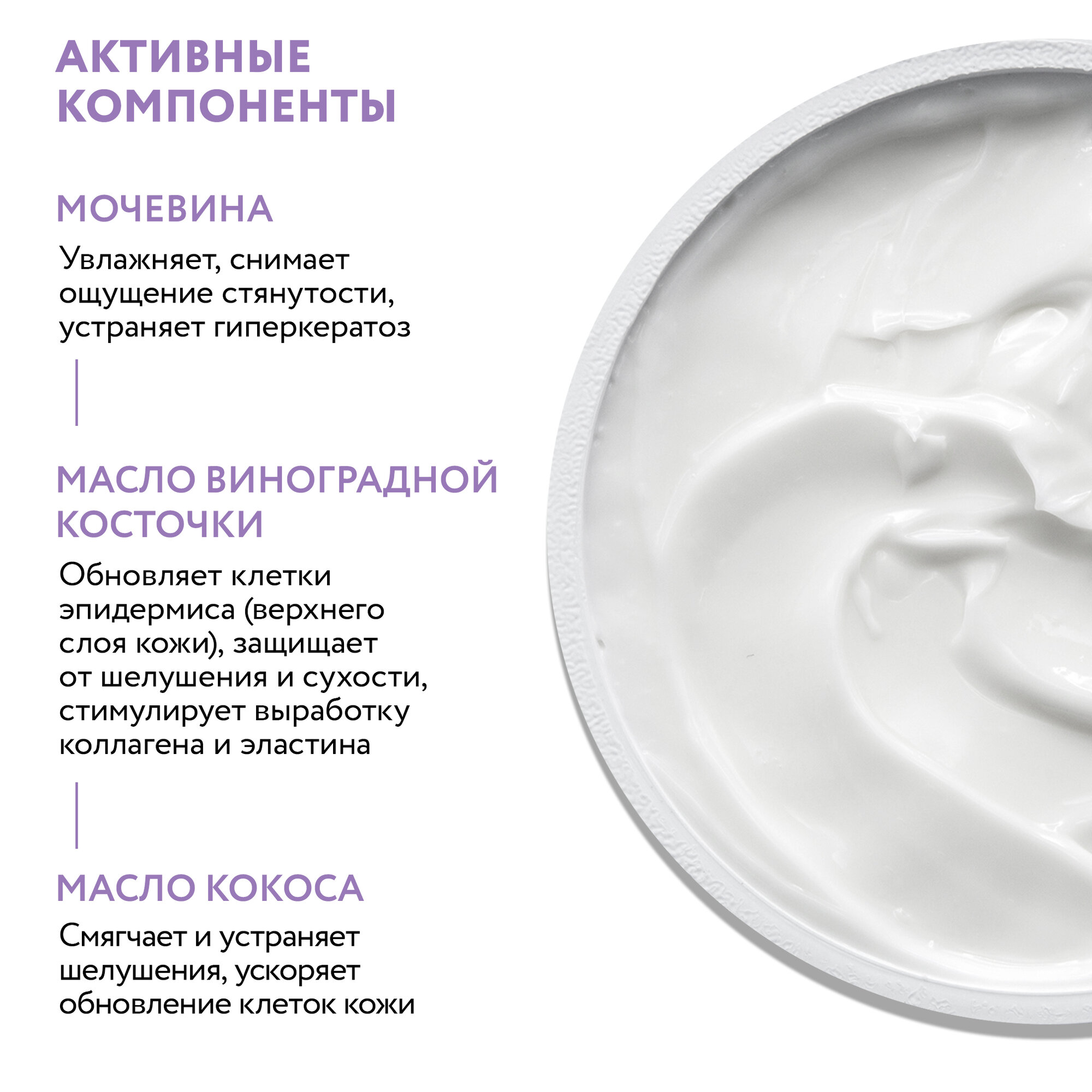 | Состав | Aqua, Urea, Cocos Nucifiera (Coconut) Oil, Potassium Cetyl Phosphate, Vitus Vinifera (Grape) Seed Oil, Isopentyldiol, Sorbitol, Sodium acrylates copolymer (and) Lecithin, Theobroma Cacao (Cocoa) Seed Butter, Phenoxyethanol (and) Ethylhexylglycerin, Dimethicone, Ceteareth-20, Sodium PCA, Betain, Sorbitol, Glycine, Alanin, Proline, Serine, Theonine, Arginine, Lysine, Glutamic Acid, Perfume, Disodium EDTA |