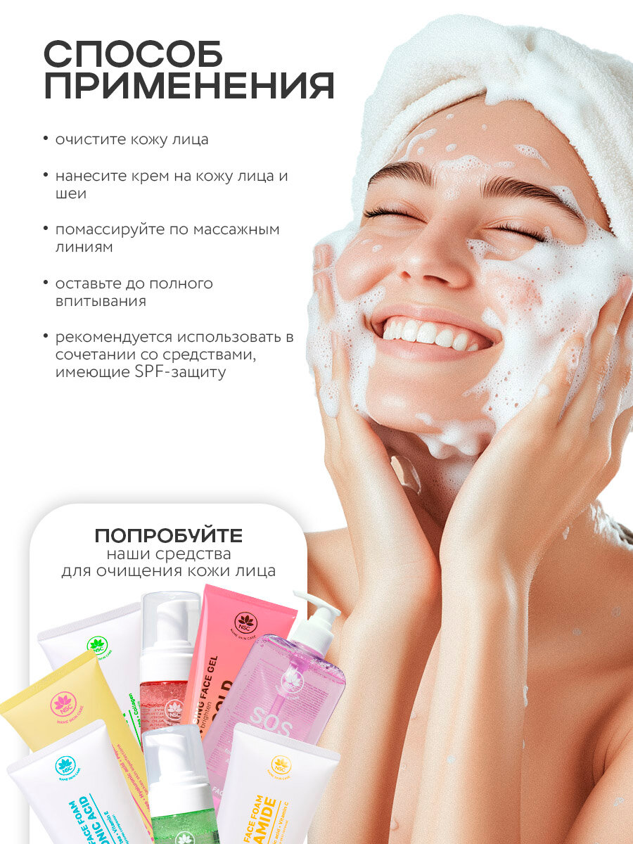 | Способ применения | нанесите крем на очищенную кожу лица и шеи, помассируйте по массажным линиям, оставьте до полного впитывания. Рекомендуется использовать в сочетании со средствами, имеющие SPF-защиту. |
