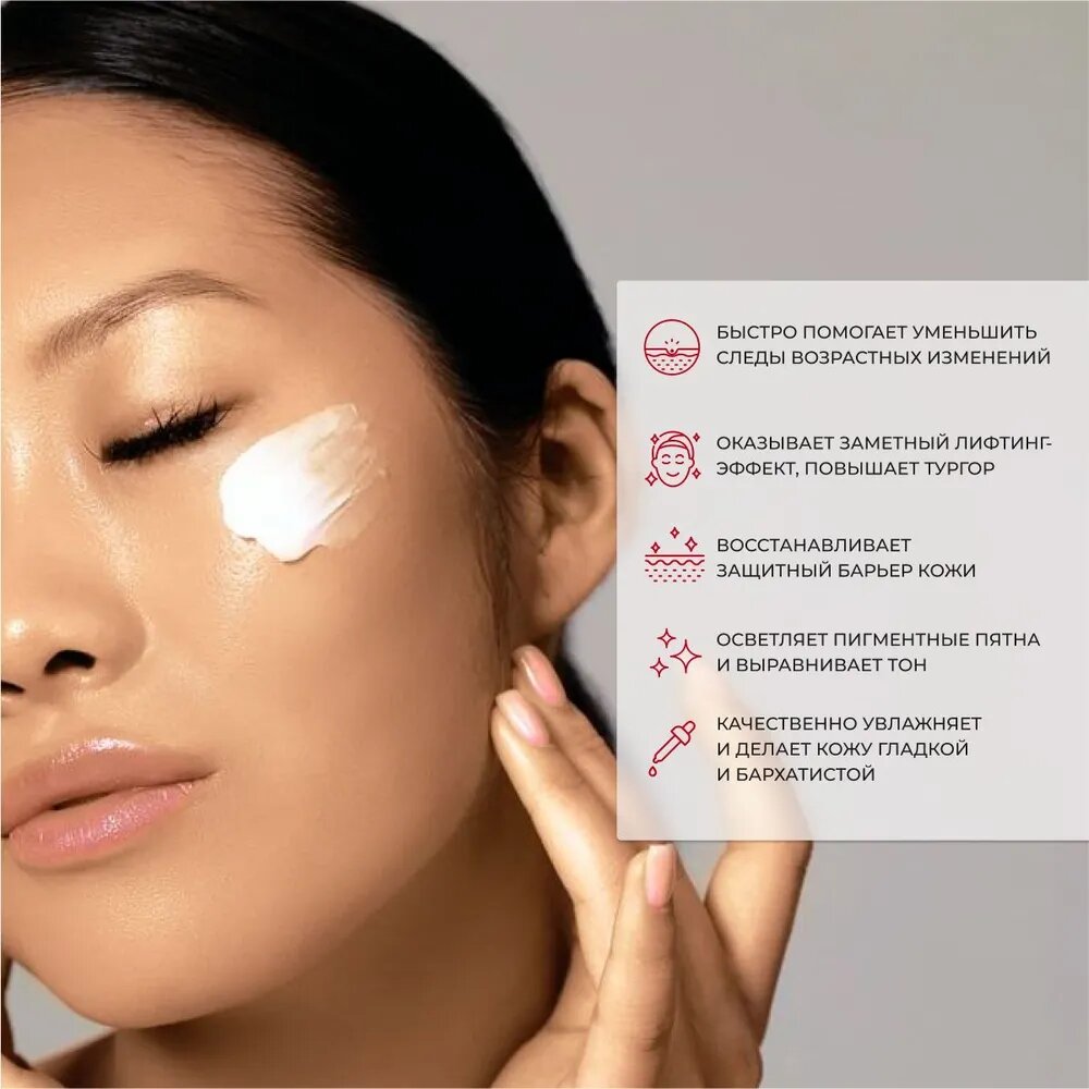 | Эффект | восстановление / выравнивание микрорельефа / лифтинг / омоложение / от морщин / отбеливание / отшелушивание / питание / повышение упругости / расслабление / сияние кожи / смягчение / снятие воспалений / снятие отеков / сужение пор / тонизирование / увлажнение / улучшение цвета |