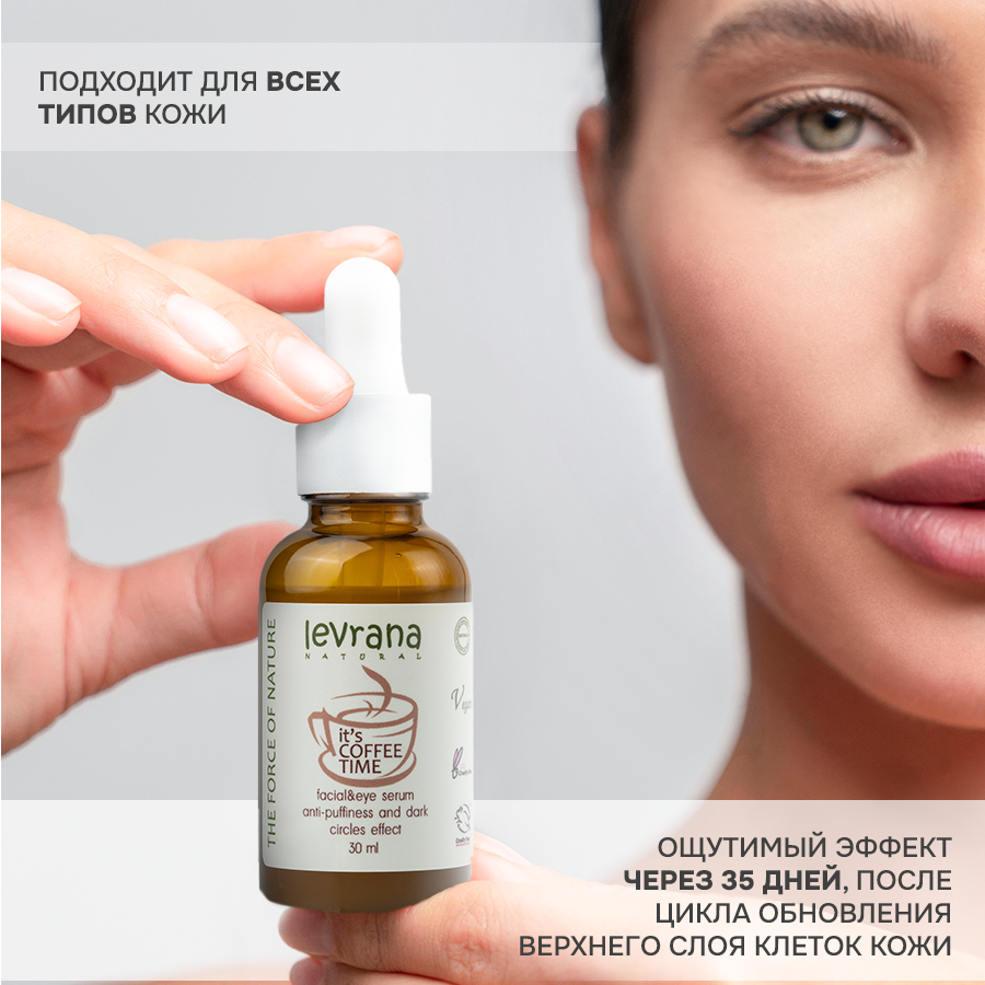 Сыворотка для лица от темных кругов и отеков под глазами и отечности с кофеином, Levrana , 30 мл интересное: