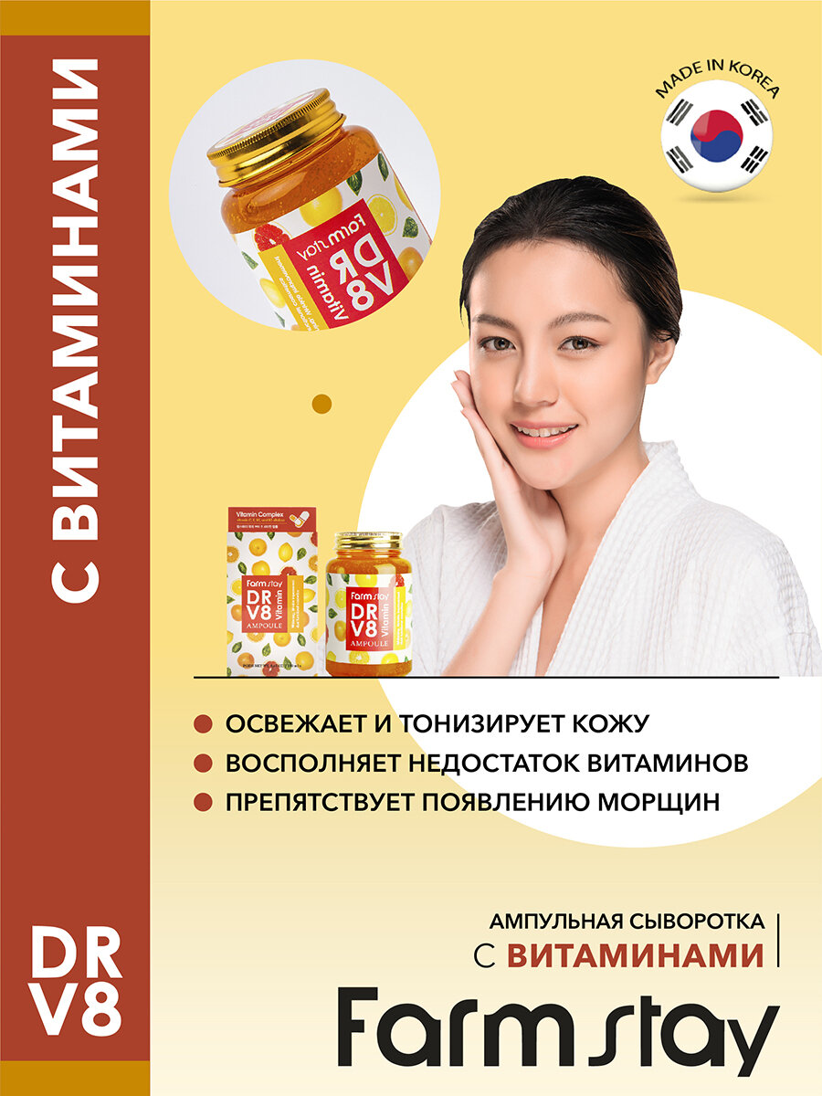 Купить FARMSTAY Сыворотка для лица с витаминами DR V8 Vitamin Ampoule, 250 мл