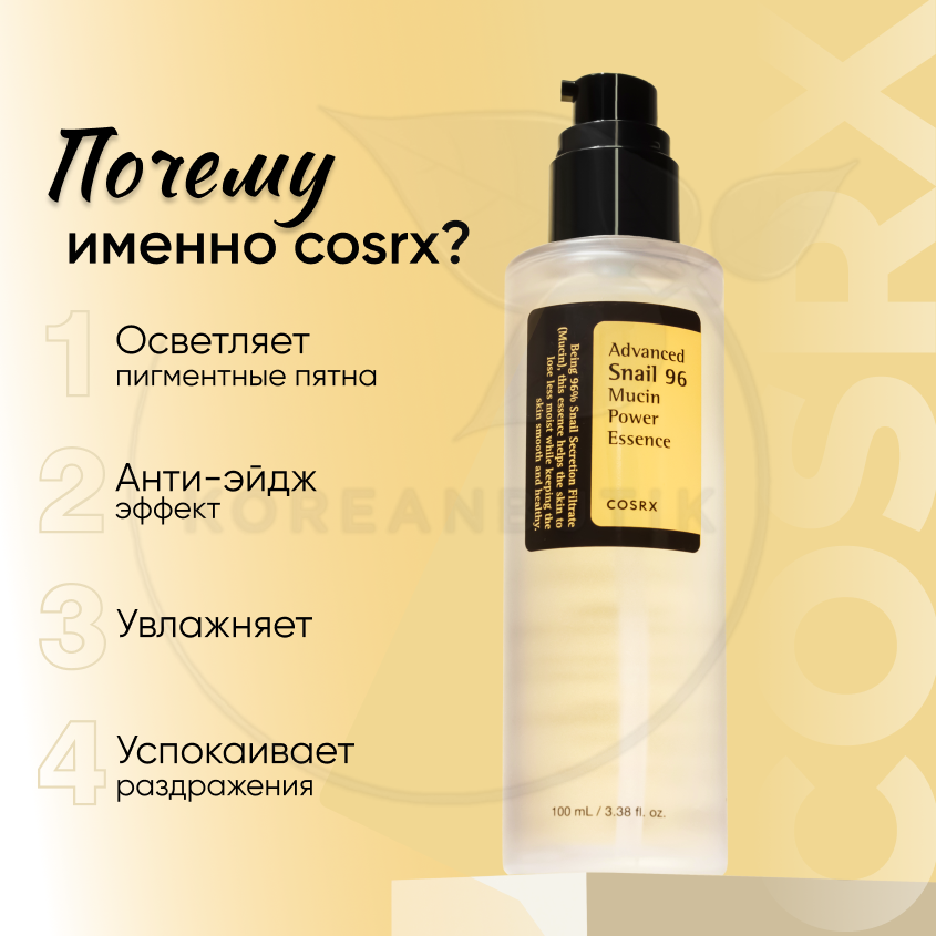 COSRX Essence Advanced Snail 96 Mucin Power Эссенция для лица с фильтратом улитки, 100 мл интересное: