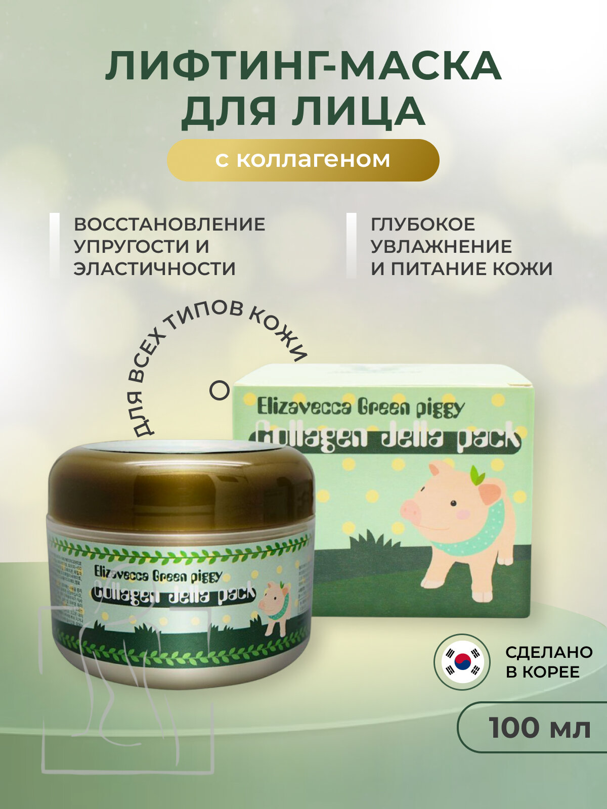 Маска регулярная со свинным коллагеном Elizavecca Green Piggy Collagen Jella Pack для сухой и возрастной кожи, 50 мл интересное: